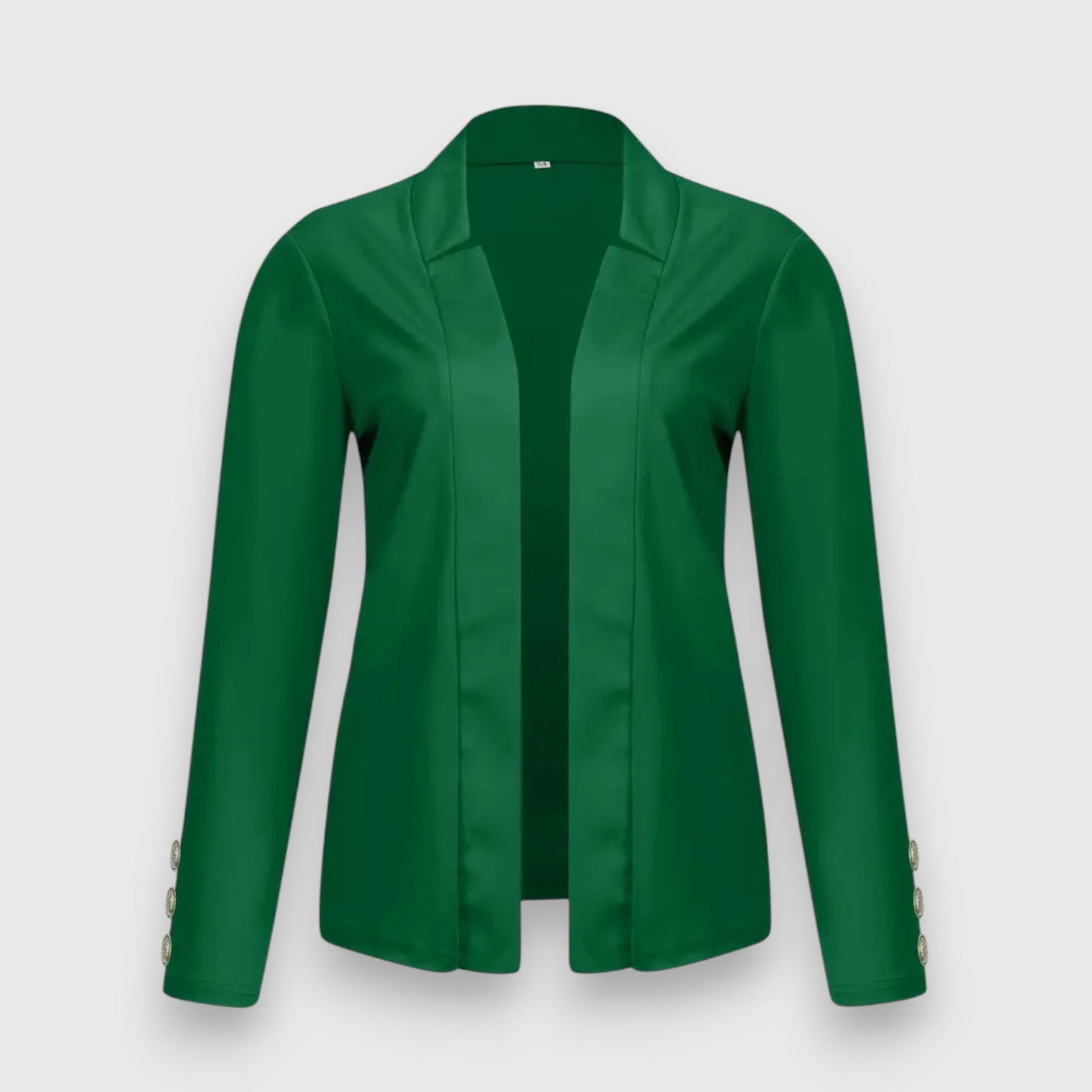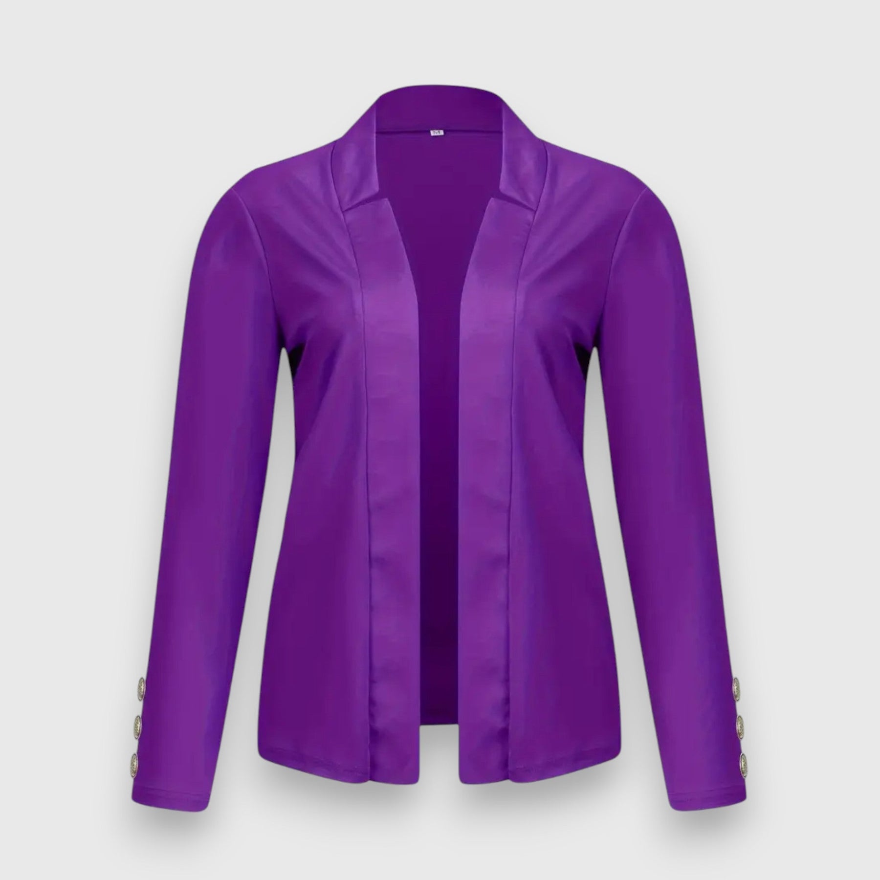 The Aria blazer combines understated elegance with professional style. Its open design with a single button front gives it a modern touch, while the long sleeves and high-quality workmanship ensure optimal comfort. Whether for a formal or casual look, this blazer is a timeless classic for any wardrobe.